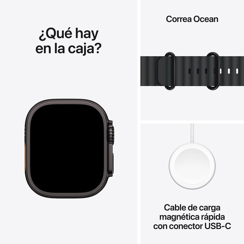 FUERTE AL EXTREMO, EQUIPADO AL MÁXIMO — Caja de titanio de 49 mm resistente a la corrosión. Cristal frontal de zafiro. Digital Crown de gran tamaño y Botón de Acción personalizable para tener acceso inmediato a un montón de funciones. Sometido a pruebas según el estándar MIL-STD 810H. Resistencia al agua hasta 100 metros.