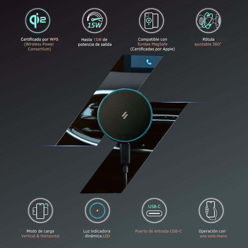 Soporte magnético para auto con carga inalámbrica Qi2 Adam Elements CQ1