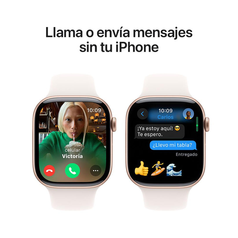 MANTENTE EN CONTACTO — Envía mensajes de texto, contesta llamadas, escucha música y podcasts, y recibe notificaciones estés donde estés. El Apple Watch Series 10 (GPS) usa tu iPhone o conexión Wi-Fi para mantenerte en contacto.