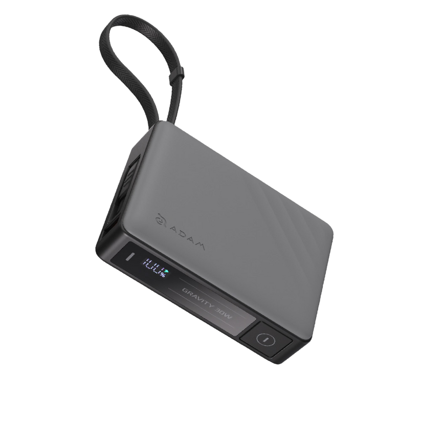 GRAVITY 30W es una batería portátil de 10 000 mAh diseñada para un uso prolongado, compacta y liviana para llevarla a cualquier parte. El cable de carga USB-C integrado elimina la molestia de olvidar el tuyo.