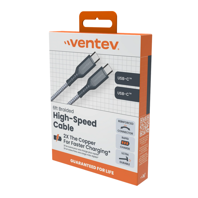 Ventev – Cable USB-C a USB-C trenzado de alta velocidad