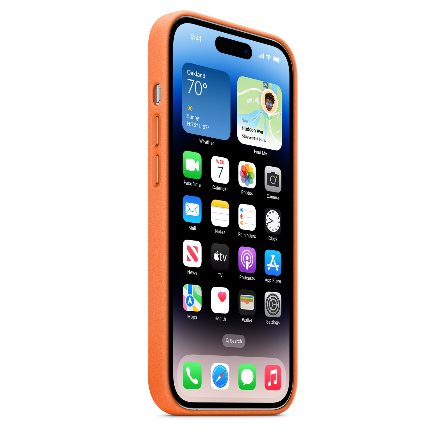 La funda está fabricada con piel suave de primera categoría para proteger tu iPhone. La piel es un material natural y, como en un cinturón de calidad, con el tiempo pueden aparecer pliegues o marcas. El uso con los accesorios MagSafe puede dejar ligeras huellas. Si quieres evitarlo, te recomendamos que elijas una funda transparente o de silicona para el iPhone 14 Pro.